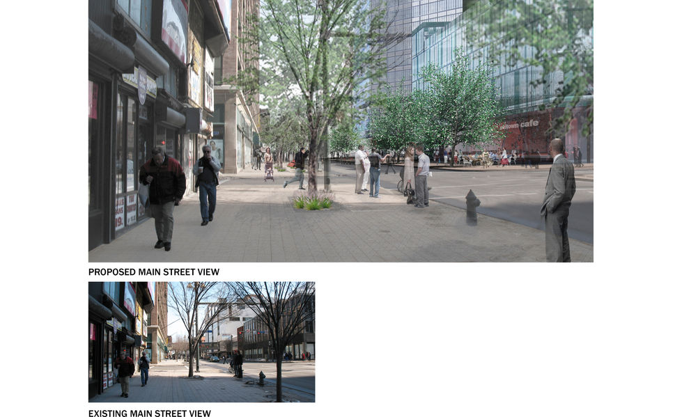 Due to the increased density of the proposed development, the project will trigger a rethinking of parking strategies, use of public transportation, high-density residential development, and the future pedestrian networks. The master plan provides recommendations for accommodating this increased density by reconfiguring the site to accommodate new office, retail, residential and hotel uses and the reuse of the existing underground garage and service tunnels, the possible retention of historical elements of the existing mall, and pedestrian movement in and throughout the study area.